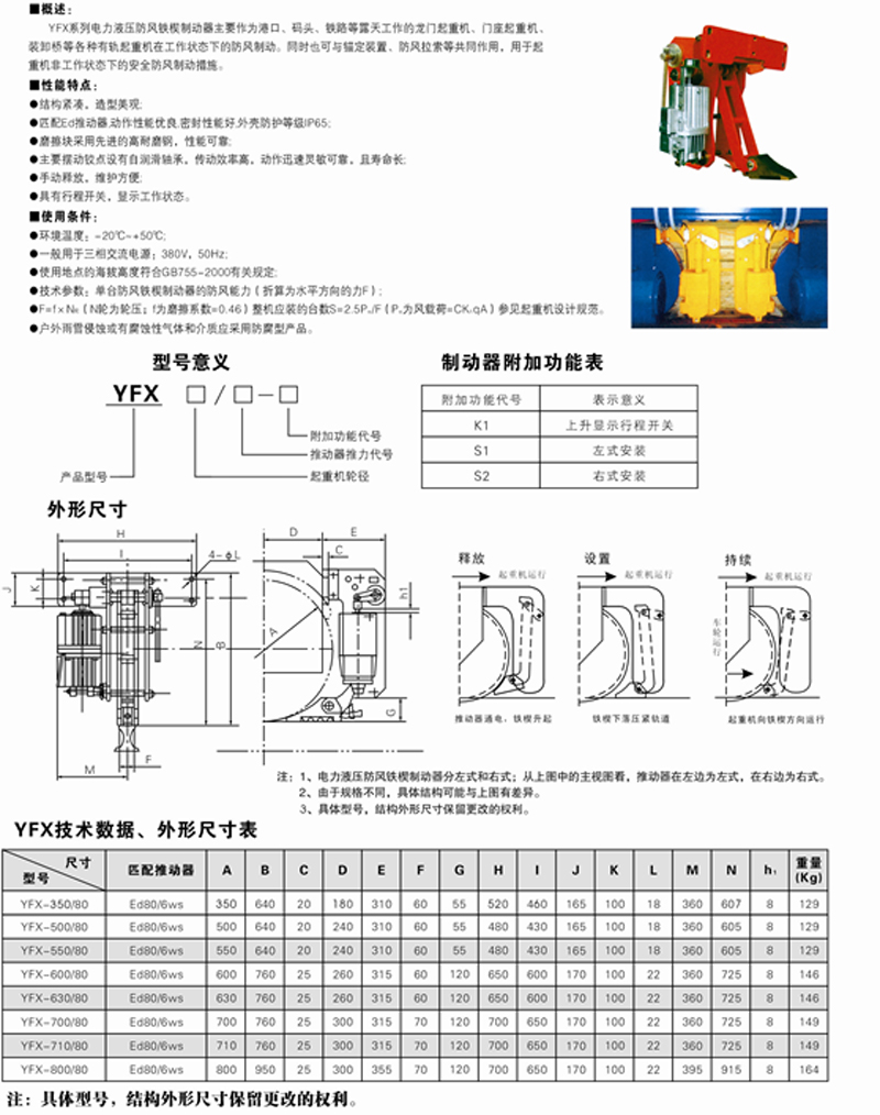 YFX系列電力液壓防風(fēng)鐵楔制動器